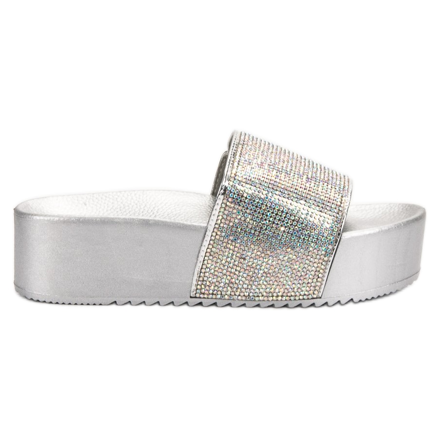 Fedezze fel a mindennapi divatot az elegáns szürke színű Marquiz platform csúszdákkal. Ezek az egyedi papucsok tökéletes kiegészítők azoknak a nőknek, akik értékelik a kényelmet, de nem adják fel az egyedi stílust. Fényes kristályokkal díszítve felhívják magukra a figyelmet, és tökéletesen passzolnak a nyári, hétköznapi stílusokhoz.