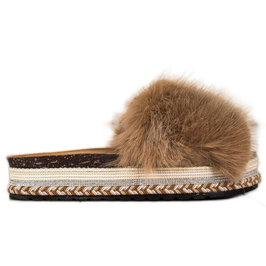 Fedezze fel az egyedülálló kényelmet és stílust barna papucsokkal a Seastar márka dekoratív platformján! Ezek a divatos, minőségi anyagból készült csúszdák a természetes árnyalatú, luxus műszőrmével borított felsőrésznek köszönhetően vonzzák magukra a figyelmet.