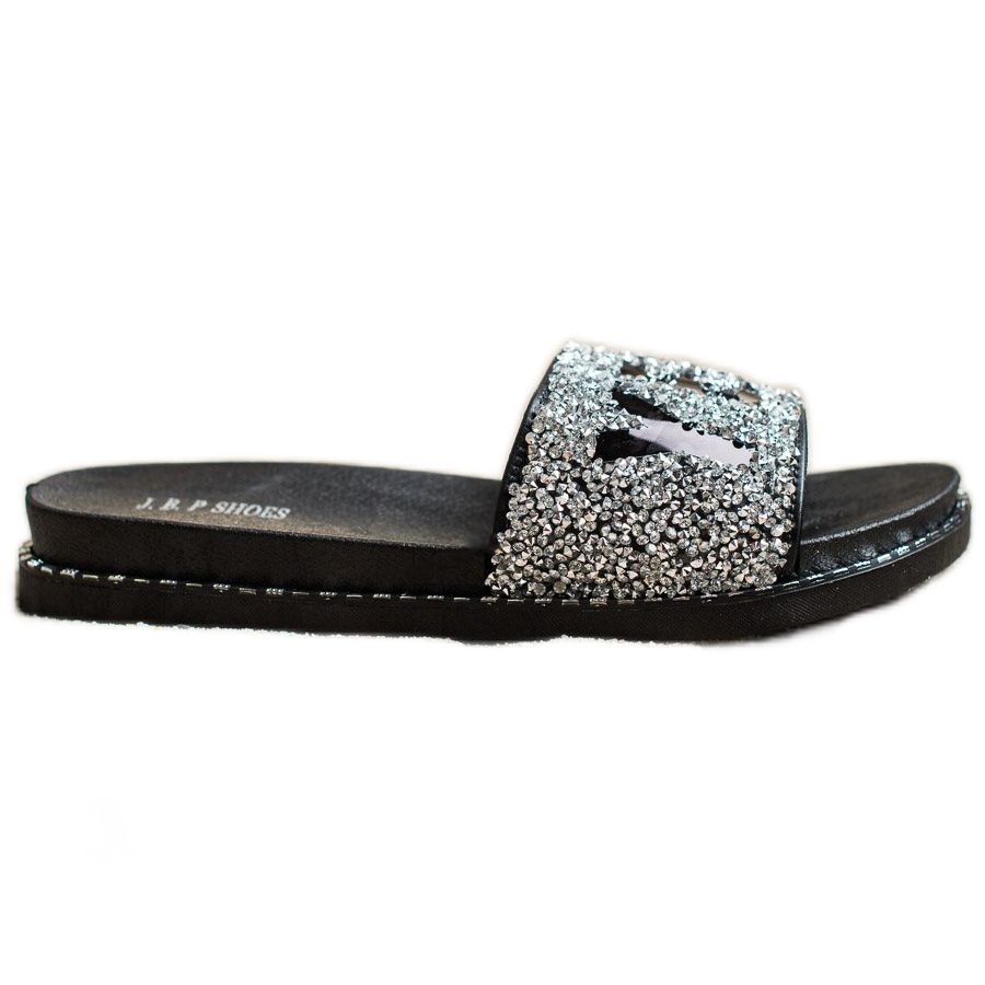 SHELOVET SHELOVET Divatos papucsok kristályokkal fekete ezüst
