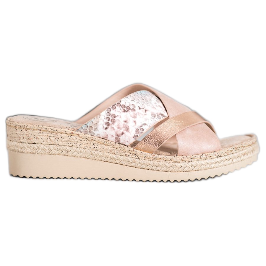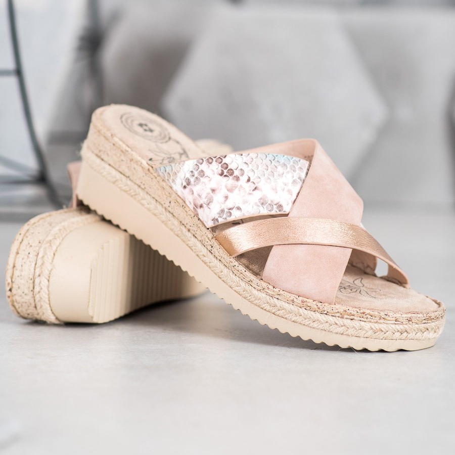 A hétköznapi stílusban készült csúszdák nagyszerű választás a mindennapi viselethez, miközben elegáns megjelenést kínálnak. Kényelmes, szintetikus talpuk futófelülettel rendelkezik, amely biztosítja a stabilitást és a tapadást járás közben. Az 5,5 cm-es ékes sarok emellett kiemeli az alakot a kényelem rovására.