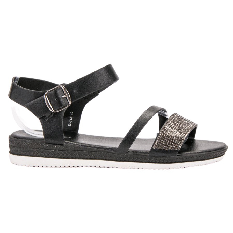 SHELOVET SHELOVET Divatos szandál köbös cirkóniummal fekete