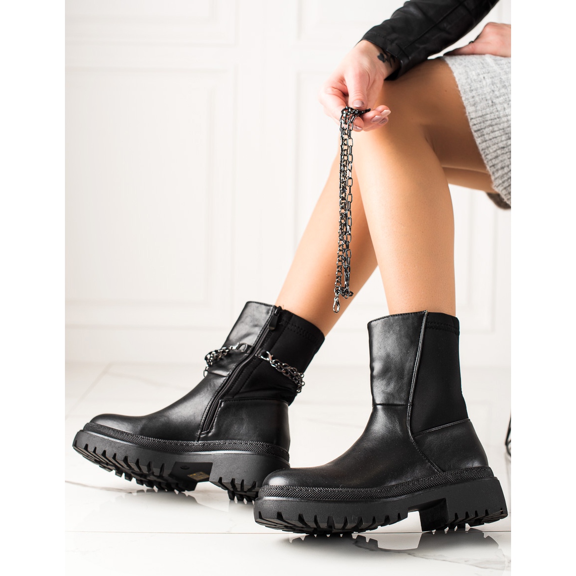 A cipők kiváló minőségű anyagokból készülnek, beleértve a műbőrt és a szövetet, ami stílusossá és praktikussá teszi őket. További előnyt jelentenek a dekoratív strasszok és a könnyen leszerelhető lánc, amely lehetővé teszi a stílus személyre szabását. A kerek orr, a szigetelés és a cipőtakaró betét kényelmessé és tökéletessé teszik a táskákat a hidegebb napokra.