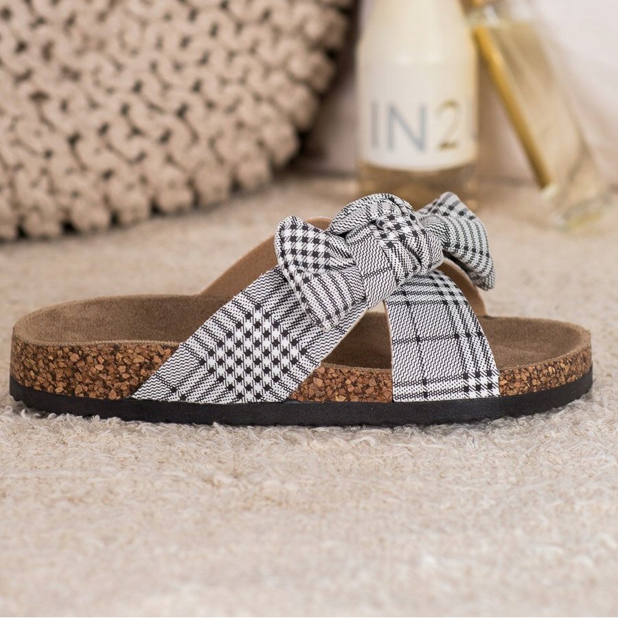 A divatos VINCEZA houndstooth flip-flop fekete-fehér színben tökéletes választás minden stílusos nő számára. Ezek az elegáns bebújós cipők ötvözik a könnyedséget és a kényelmet, így tökéletesek a forró napokra. Egyedi dizájnjuk dekoratív masnival egyedi karaktert kölcsönöz nekik, így könnyedén kombinálhatod hétköznapi rövidnadrágokkal és elegáns ruhákkal egyaránt.