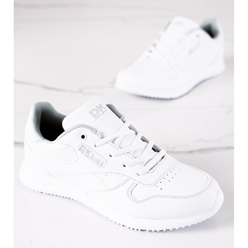 A fehér DK klasszikus tornacipők minden évszakban megfelelőek - tavaszi sétákhoz és őszi kirándulásokhoz egyaránt. A cipő belseje puha textil anyaggal bélelt, ami további kényelmet biztosít.