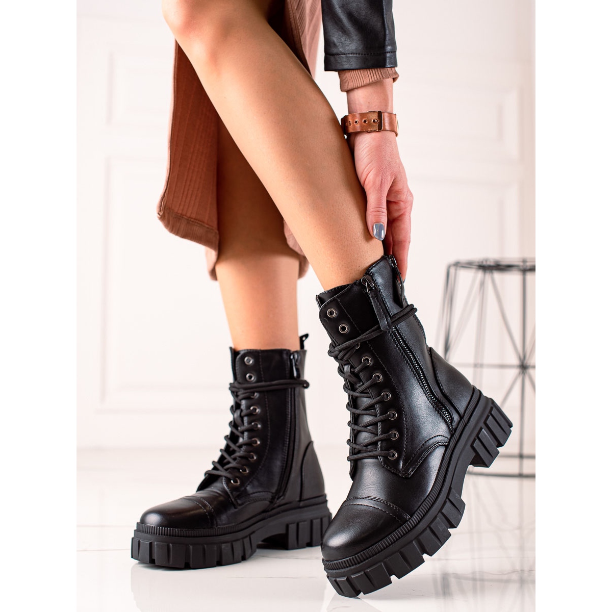 Fedezze fel a rendkívüli stílust és kényelmet a mélyfekete színű, dekoratív cipzáras Diamantique Workery bokacsizmákkal. Ez a divatos női bokacsizma a funkcionalitás és az elegáns dizájn tökéletes kombinációja, tökéletes a mindennapi stílushoz, különösen az őszi/téli szezonban.