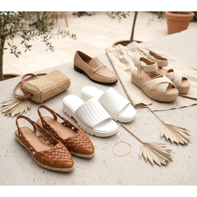 A fonott cipők viszont hosszabb múltra tekintenek vissza a divatban – csak említsük az ikonikus olasz szandálokat a hetvenes évekből. A 2026-os tavaszi-nyári szezonban visszatérnek az elegáns, városi változatokba: hátul szőtt bőrpántokból készült balettlakások, jutaszövetből készült kosárral ellátott szandálok vagy dombornyomott kosárfonás mintájú naplopók. Vászonszoknyákkal vagy ruhákkal kombinálva az ünnepi sikkekre jellemző hatást keltenek.