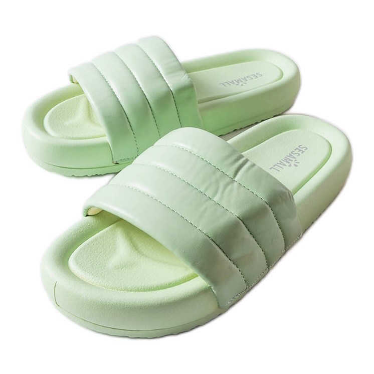 A stílusos, kényelmes és univerzális - a zöld dorén papucsok a nyári napok számára javaslatot jelentenek azoknak a nőknek, akik értékelik a divatos megjelenést és a gyakorlati megoldásokat. A steppelt dekoráció karaktert ad nekik, és a csúszásszerkezet gyorsan felveszi őket. Tökéletes séta, strand vagy gyors eredményekhez forró napokon.