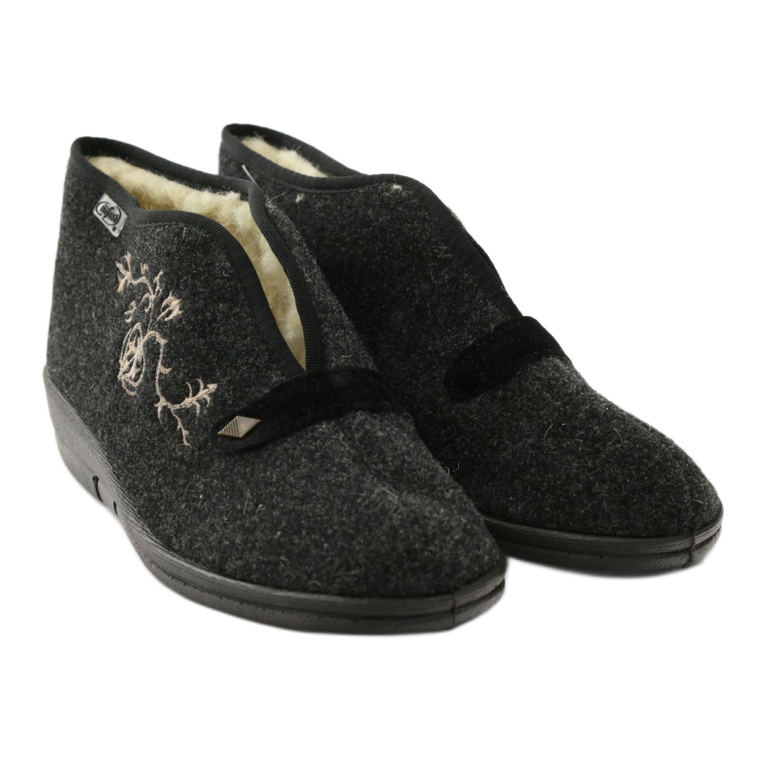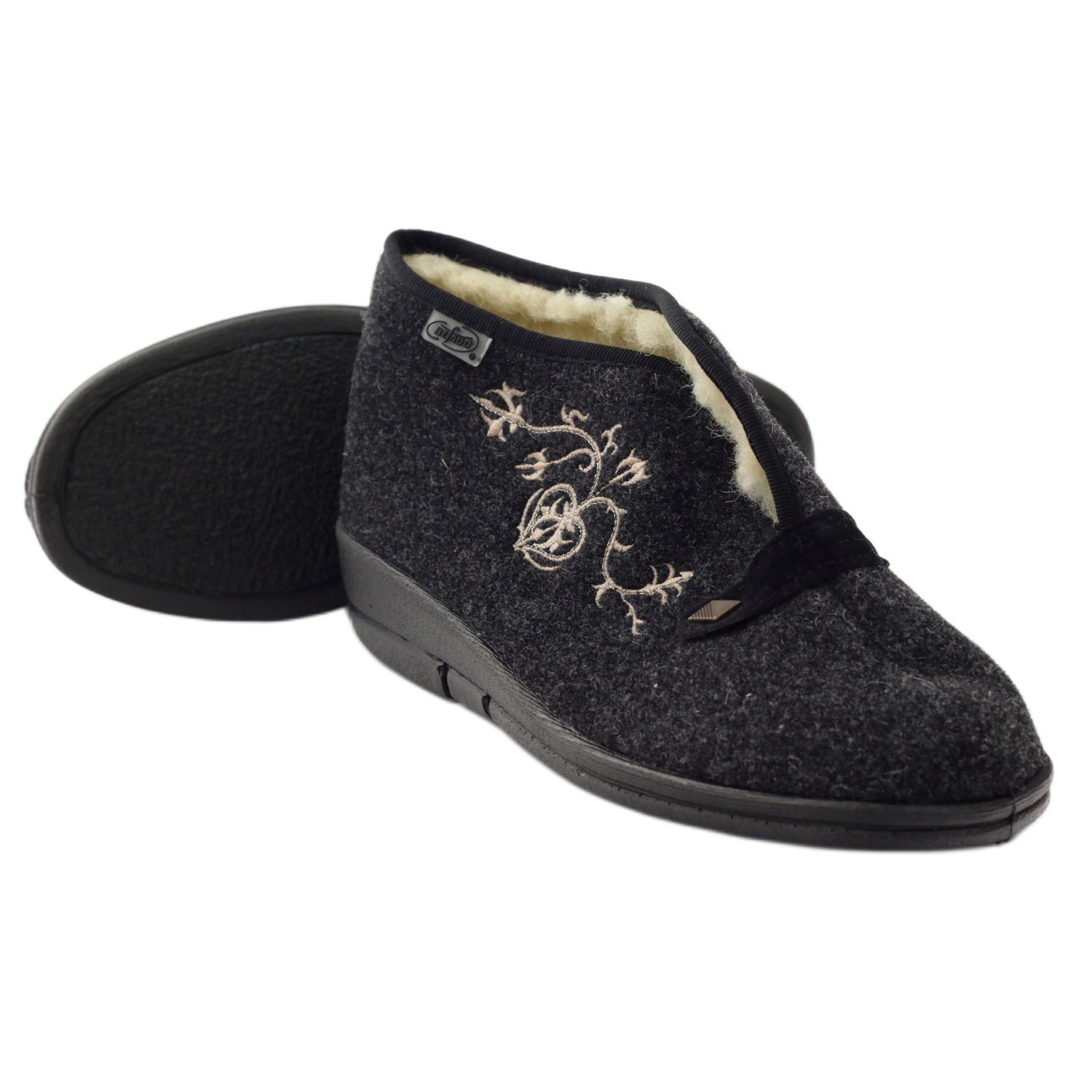 Meleg, kényelmes és stílusos - a lengyel Befado márka papucsai, 031D028 modell, a funkcionalitás és a divatos megjelenés tökéletes kombinációja a hidegebb napokra. Kiváló minőségű filcszövetből készült, természetes báránygyapjúval szigetelve komfortot és hidegvédelmet biztosít otthon és az udvaron egyaránt.