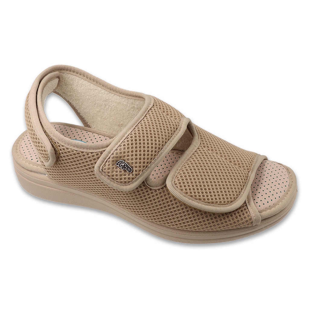 Kiváló minőségű, puha szövetekből készülnek, és ezeket a szandálokat érzékeny lábú embereknek szentelik, akik hajlamosak a kopásokra. A rugalmas és könnyű kialakítás, valamint a tépőzár bezárása lehetővé teszi, hogy könnyen megfeleljen a láb egyedi alakjának, ami növeli a viselkedés kényelmét.