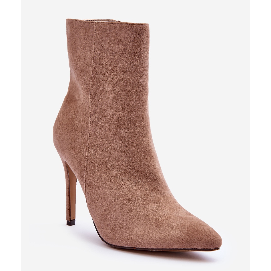 Elegáns, női csizma, kiváló minőségű öko velúrból. Állítsa be egy karcsú csapra (10 cm), a felső sarkú cipzárral rögzítve. A Spitz merevített sarkát és orrát optikailag vékony a figura, amelynek köszönhetően a modell tökéletesen illeszkedik mind ruhákhoz, szoknyákhoz, valamint nadrághoz. Könnyedén megfelelhet a klasszikus bézs árnyéknak (khaki)-ezt az őszi/téli szezonra egy női szekrényben kell.