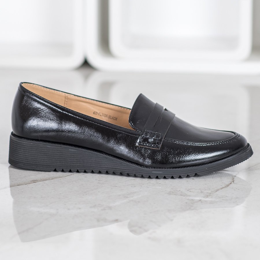 Fedezze fel az eleganciát és a kényelmet a Goodin fekete színű női mokaszinokkal. Ezek az elegáns, kiváló minőségű lakkbőrből készült cipők tökéletesen ötvözik a klasszikus dizájnt a modern trendekkel. A sima, fekete felületnek köszönhetően a mokaszinok tökéletesen illeszkednek a hétköznapokba és a formálisabb stílusokba is, így kiváló választás munkához és különféle ünnepségekhez.