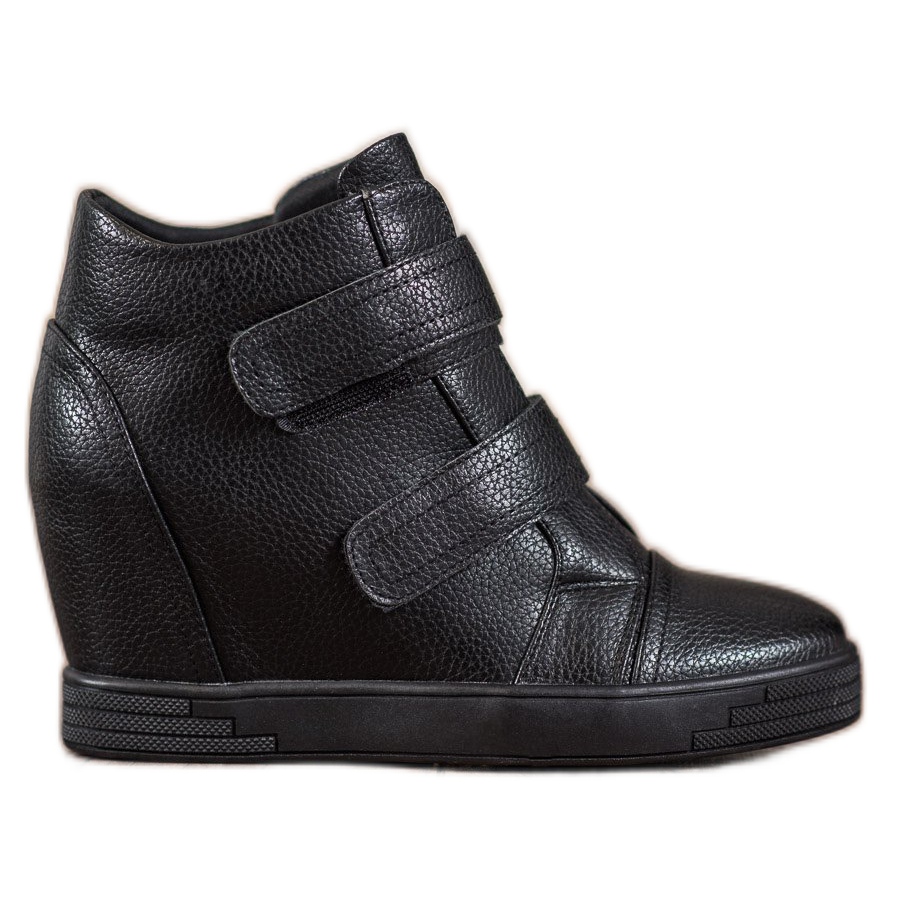A Sergio Leone öko-bőr tornacipő fekete színben tökéletes választás azoknak a nőknek, akik a divatos megjelenést a kényelemmel és a sportos stílussal szeretnék ötvözni. A kiváló minőségű ökológiai bőrből készült cipők nemcsak esztétikájukkal, hanem funkcionalitásukkal is kitűnnek. A szigetelt belső tér a hidegebb napokon is kényelmet garantál, a tépőzáras rögzítés pedig a könnyű fel- és beállítást.