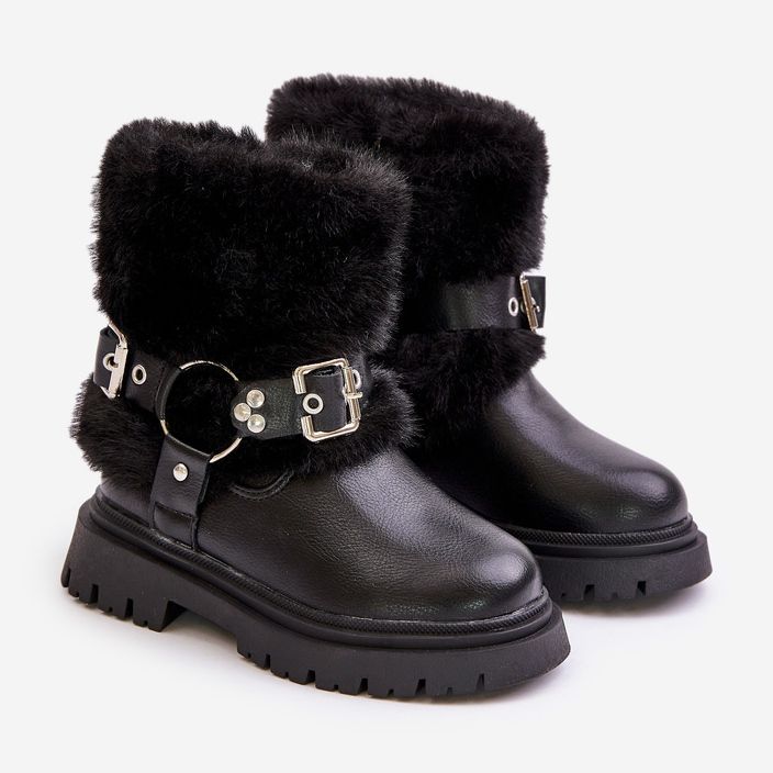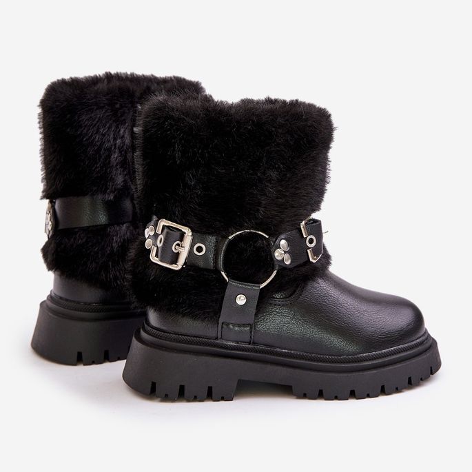 Inna marka Eco bőrből készült lánycsizma szőrmével és csatokkal, fekete kartemes