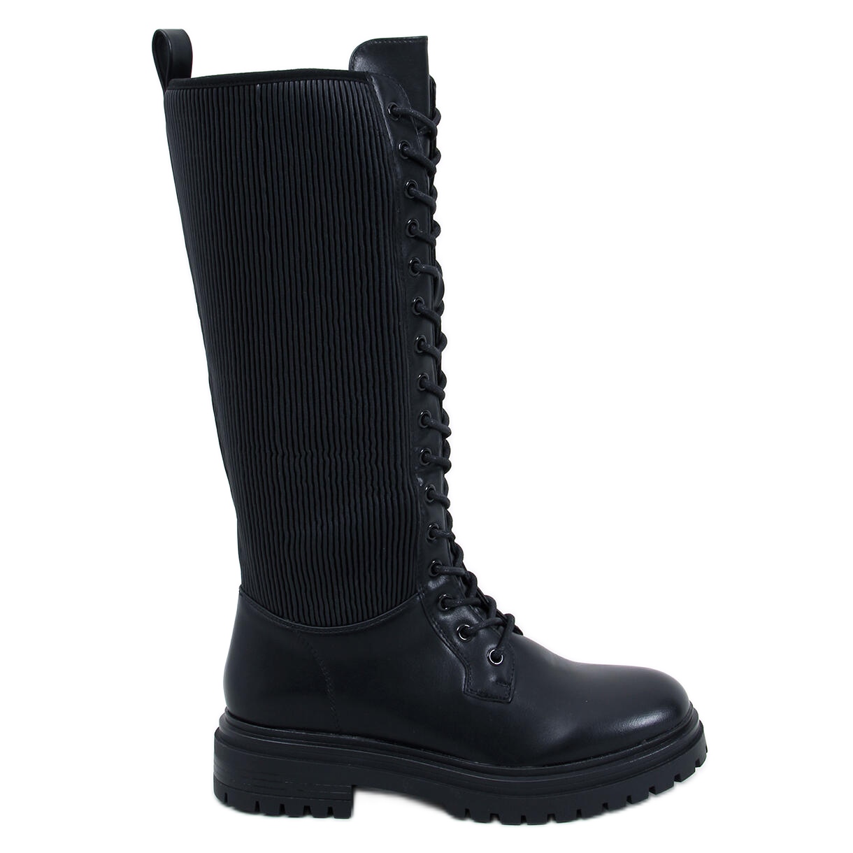 Eddies fekete tisztek - stílusos, kényelmes és hűvösebb napokra kész. A klasszikus, fekete térdcsizma egyesíti a katonai karaktert a mindennapi eleganciával - nagyszerű farmer, szoknya vagy kabát számára.