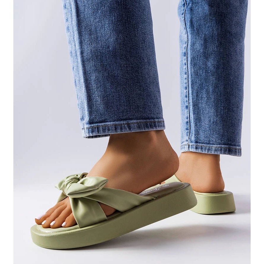 Zöld flip flopok az Edvard platformon íjjával - a szezon ütése