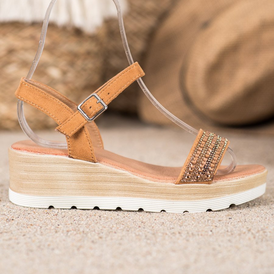 A kristályok formájában megjelenő további részleteknek köszönhetően ezek a szandálok elegáns és klasszikus karaktert kapnak, tökéletesek mindennapi használatra és különleges alkalmakra. A barna szín bézs árnyalatokkal kombinálva rendkívül univerzálissá teszi őket, és könnyen kombinálhatók különféle stílusokkal.