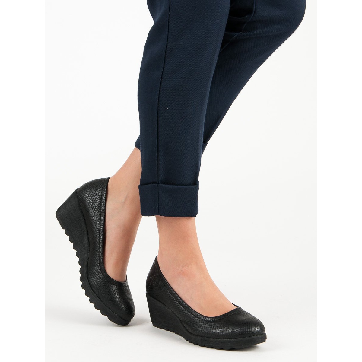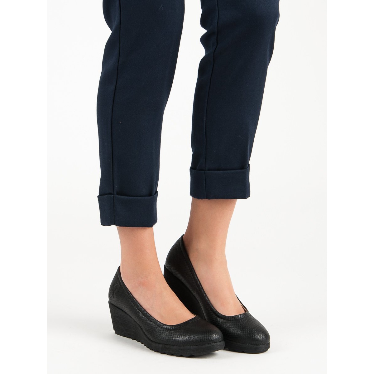A Black J. Star ékpumpák kötelező darabok minden olyan nő számára, aki értékeli a kényelmet és a stílust. Ezek a tavaszi és nyári szezonra tökéletes alkalmi cipők tökéletesen kiemelik a lábak alakját és formáját, miközben megfelelő magasságot adnak hozzá. Kiváló minőségű ökológiai bőrből készültek, így tökéletesen ötvözik az eleganciát és a praktikumot.