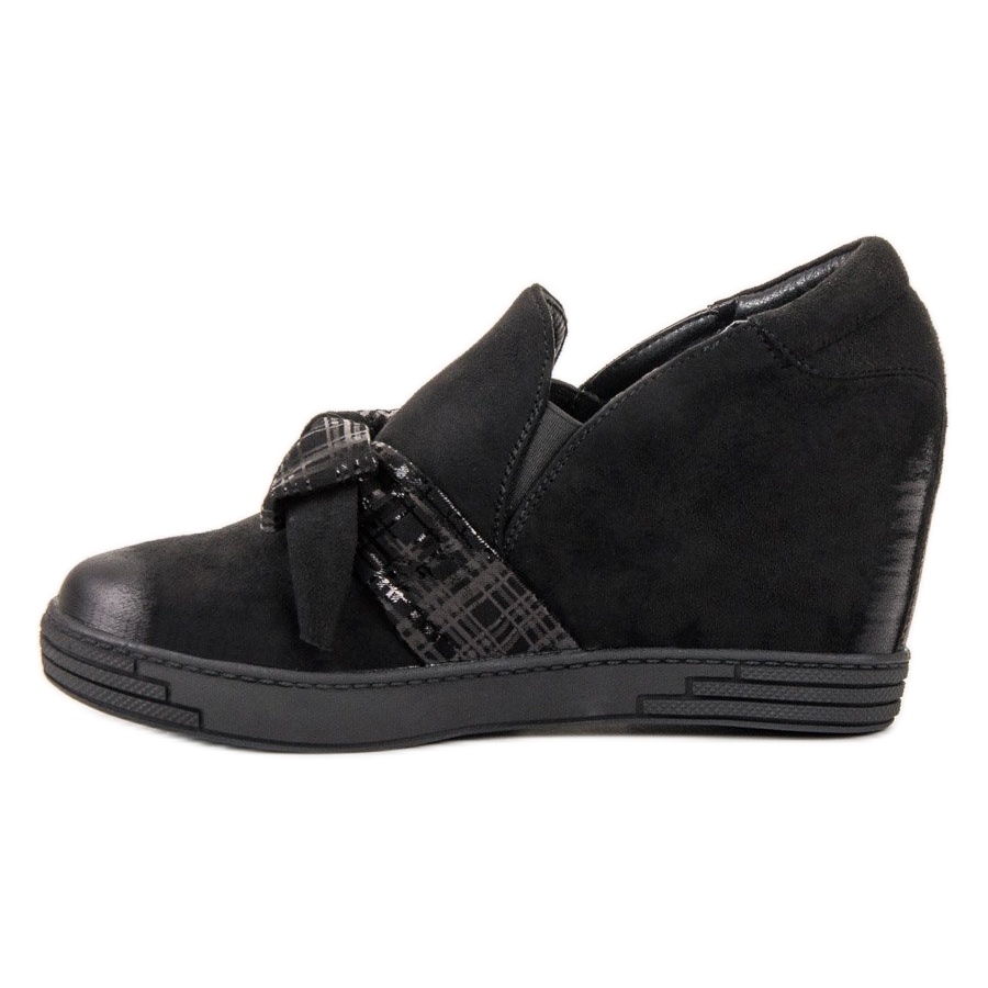 A fekete Vinceza cipő univerzális lábbeli, amely könnyen illeszthető hétköznapi ruhákhoz. Tökéletesen passzolnak farmerhez, szoknyához és elegáns ruhákhoz. Válassz stílust és kényelmet minden nap Vincezával!