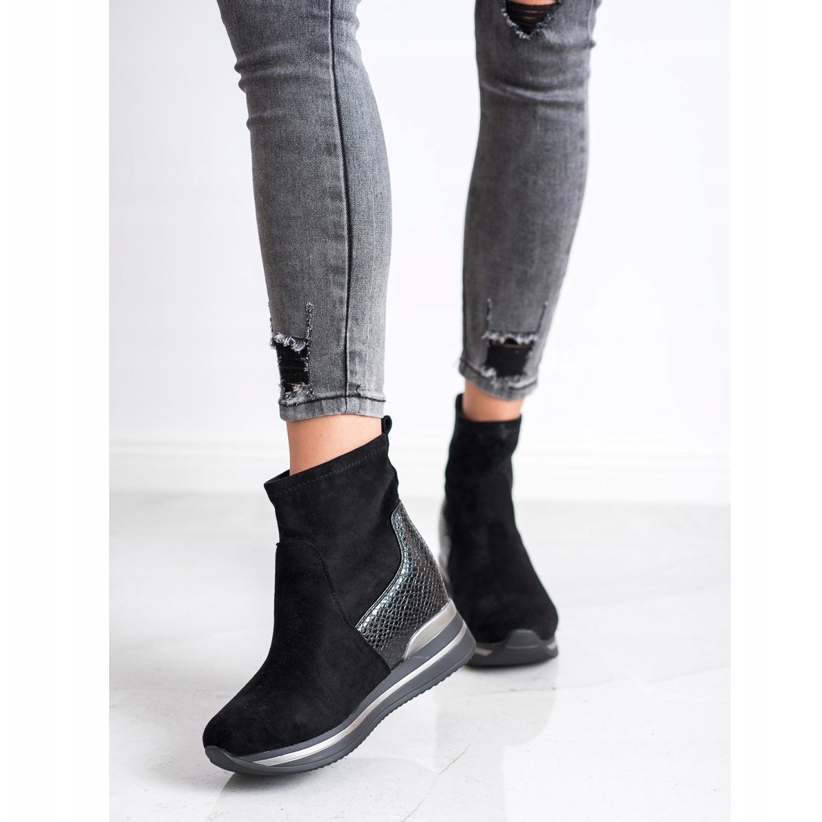 Elegáns fekete színben mutatjuk be a Gogo Wedge bokacsizmát, amely tökéletes kiegészítője lesz bármilyen őszi és téli stílusnak. Ez az egyedi női bokacsizma a divatos dizájnt ötvözi a kényelemmel, így tökéletes mindennapi használatra.