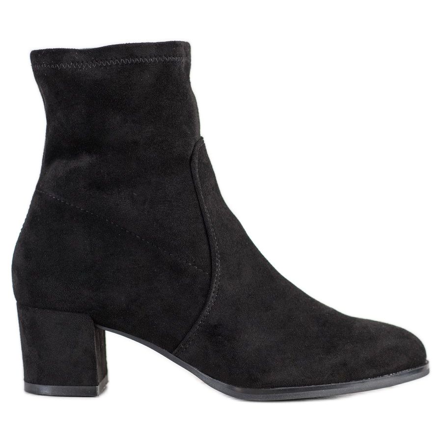 Fedezze fel a Sergio Leone fekete magas sarkú bokacsizmák eleganciáját és stílusát. Ez az egyedi csizma tökéletes ajánlat egy modern nő számára, aki értékeli a kényelmet és az eleganciát egyaránt. Kiváló minőségű ökológiai velúrbőrből készültek, nem csak esztétikus megjelenést, hanem viselési kényelmet is biztosítanak.