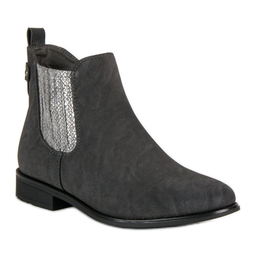 Érdekes akcentusa az ezüst betétek a gumiszalagon, amelyek megkönnyítik a cipő felhelyezését és kiemelik eredeti karakterüket. A szürke bőr és a divatos ezüst részletek kombinációja stílusos és elegáns megjelenést kölcsönöz, amely biztosan felkelti a figyelmet. Az átgondolt oldalsó cipzáras kialakításnak és az anyag rugalmasságának köszönhetően a cipő fel- és levétele könnyűvé és kellemessé válik.