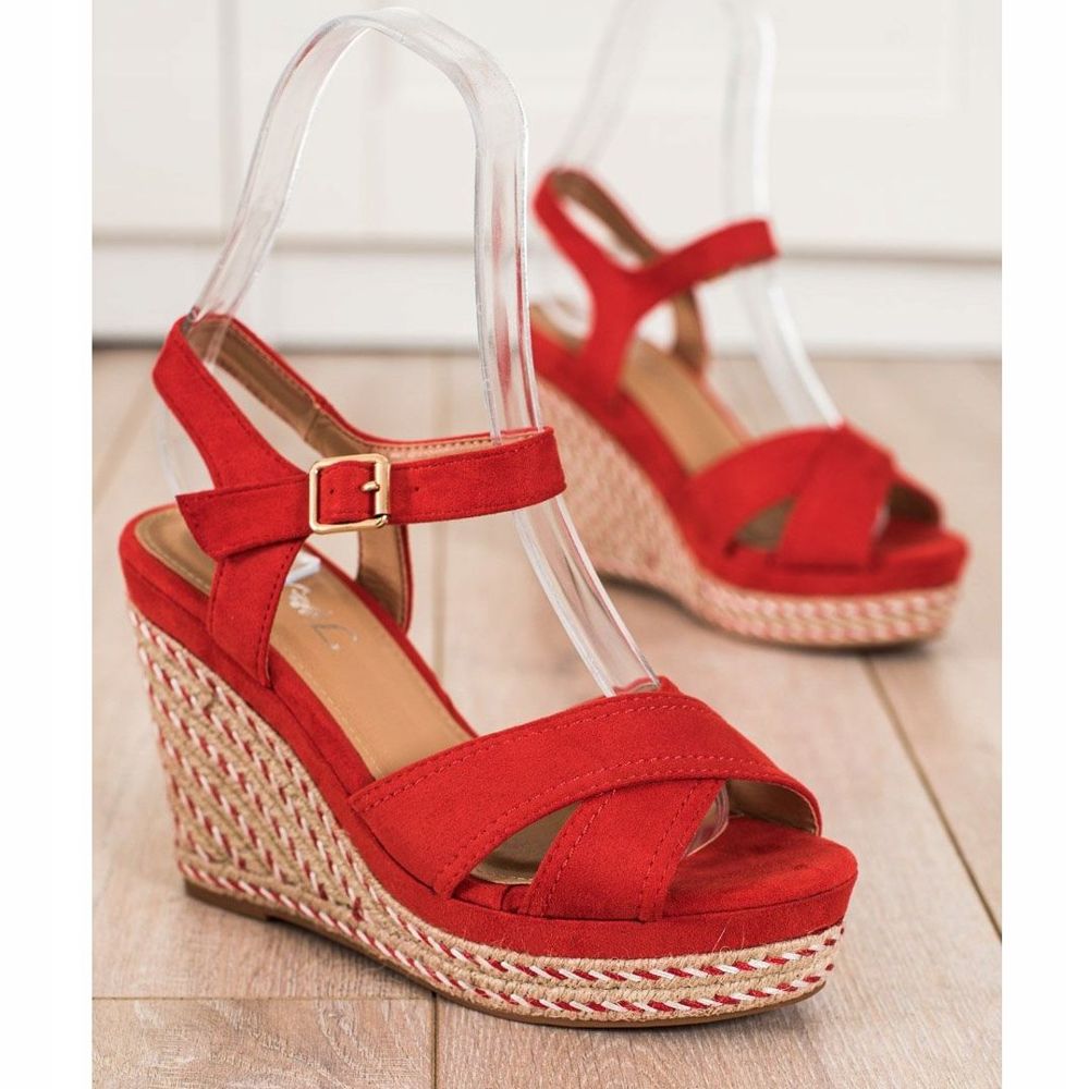 Részletek: SHELOVET Elegáns ék szandál piros