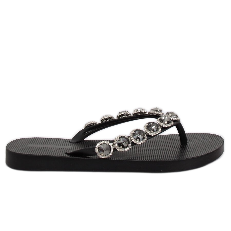 Inna marka Elegáns fekete papucs kövekkel JH69 Black