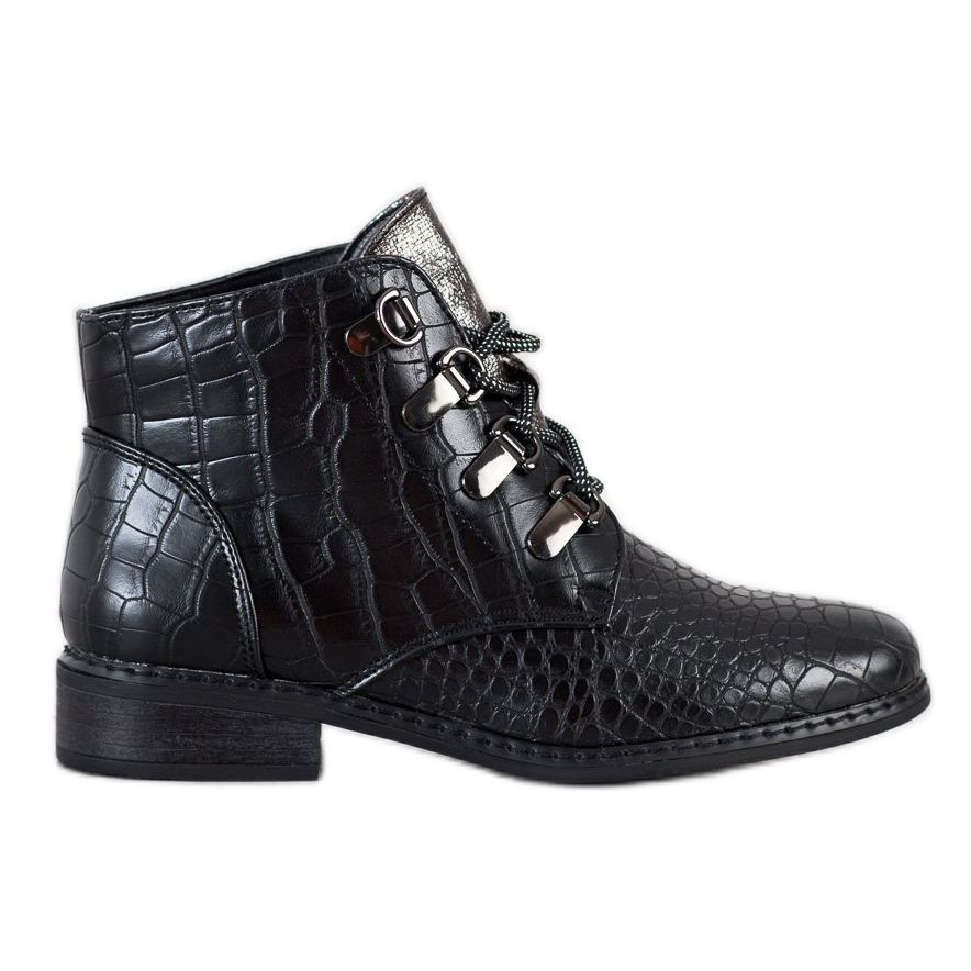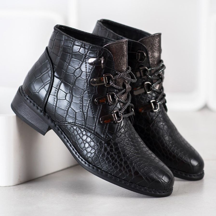 Részletek: Goodin Elegáns fűzős csizma fekete ezüst