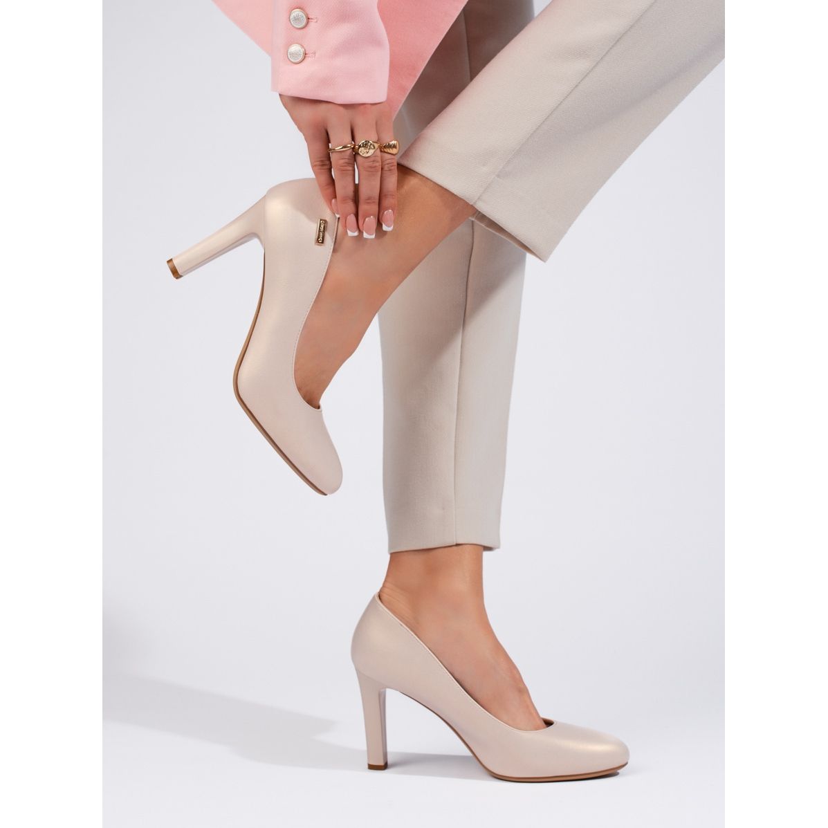 Részletek: Elegáns gyöngyház magassarkú pumpák Sergio Leone-tól bézs