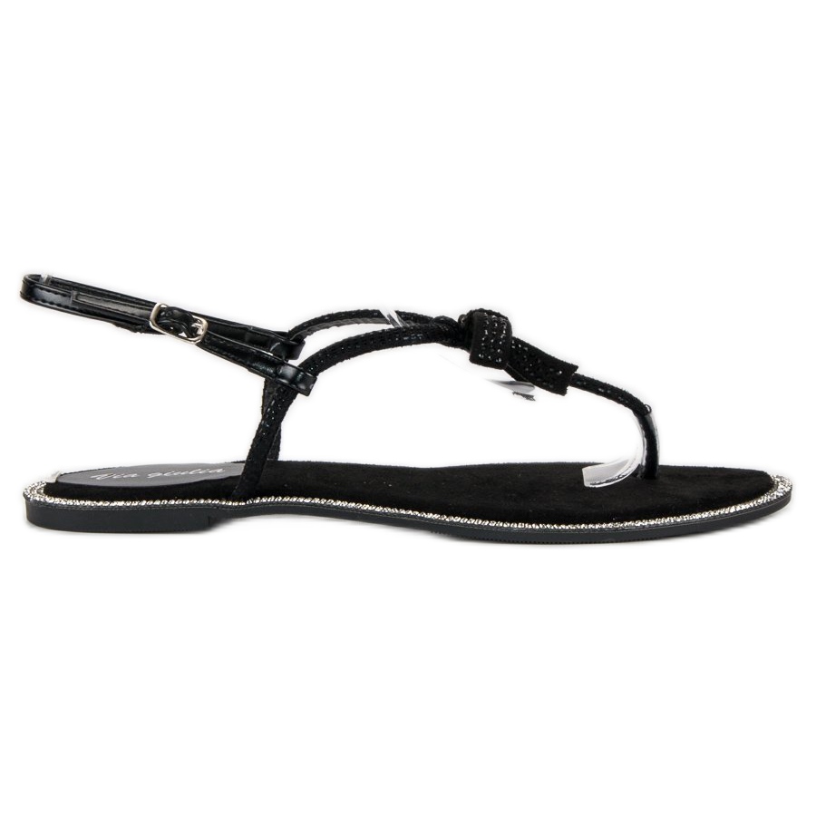 A szandálokat gyönyörű, finom részletek jellemzik - a talpát ezüst kristályok díszítik, a szíj pedig egyedi megjelenésű a fekete strasszoknak köszönhetően, amelyek elegánssá teszik őket. Az egyszerű, kis csattal történő rögzítésnek köszönhetően a szandál fel- és levétele tiszta élvezet.
