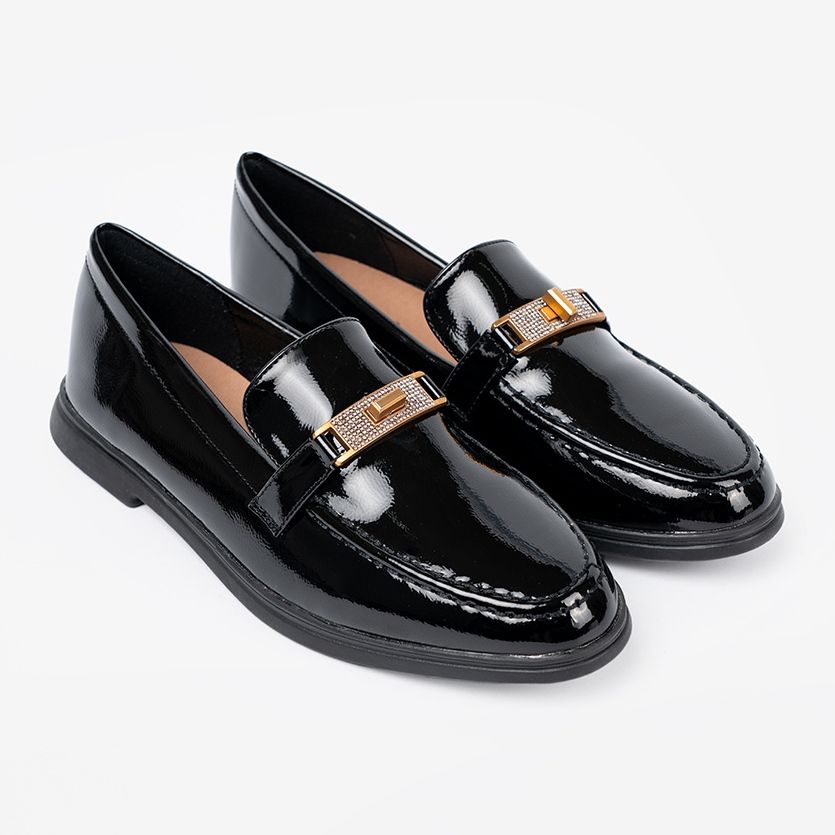 Shelvt Shelvt Elegáns lakkozott cipők arany dekorációval fekete