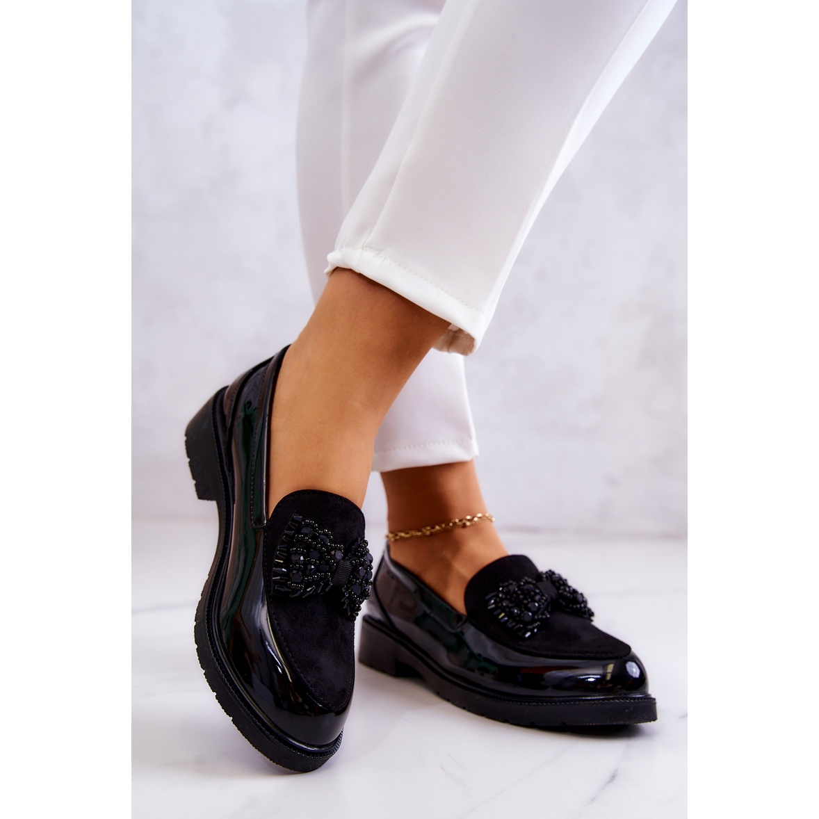 S.Barski Elegáns Lakkozott Loafers Loafers Fekete Belize