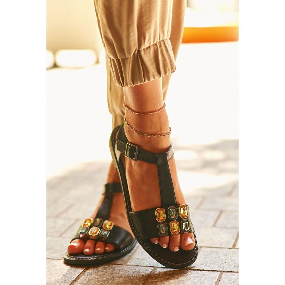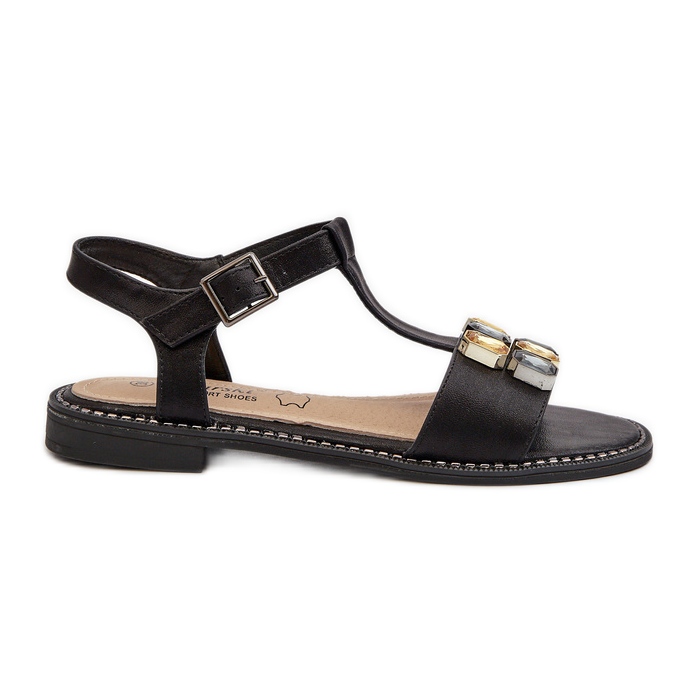 S.Barski Elegáns női szandál dekoratív részletekkel S.Barski KV27-030 fekete