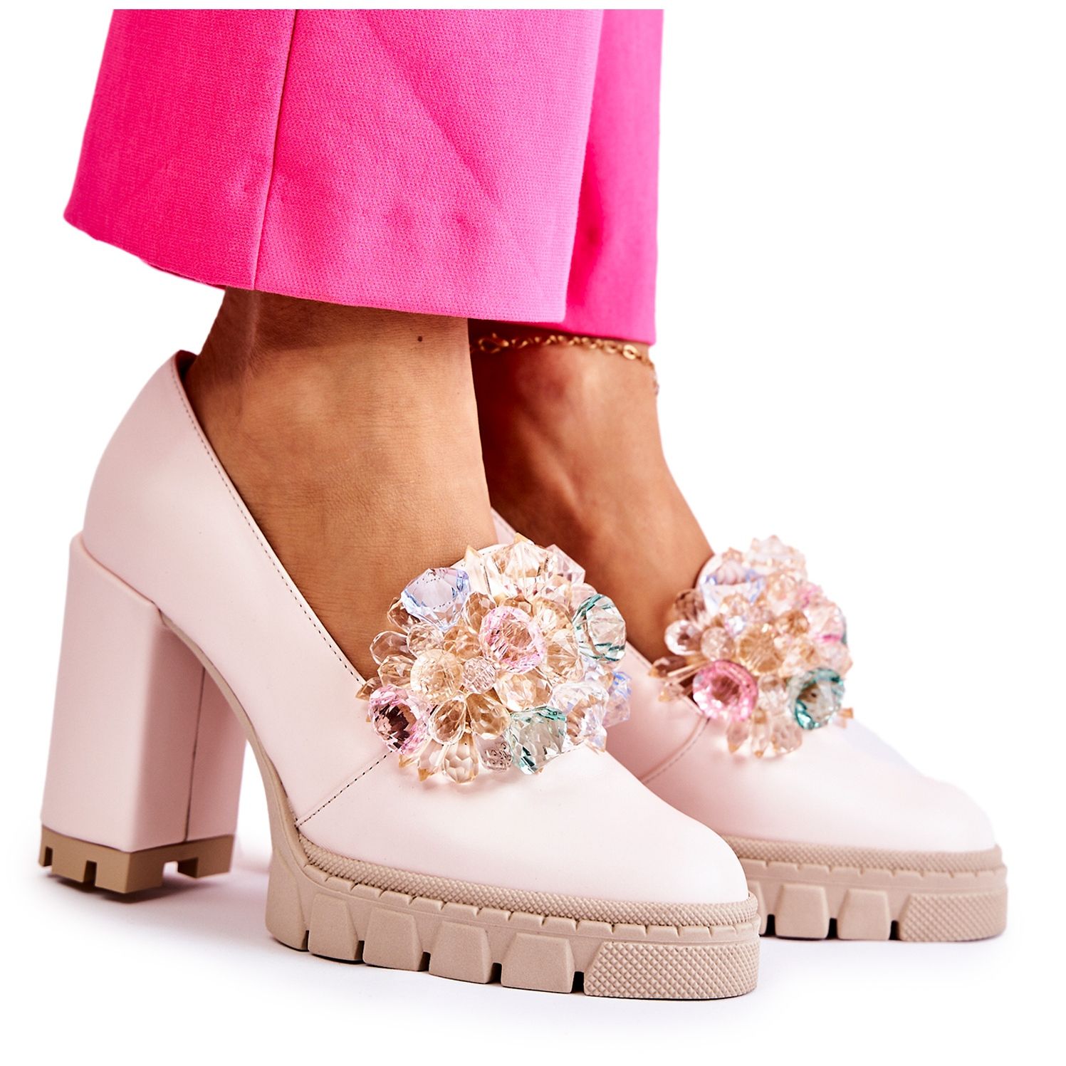 Részletek: PA2 Elegáns pumpák díszítéssel, sima világos rózsaszín katerával