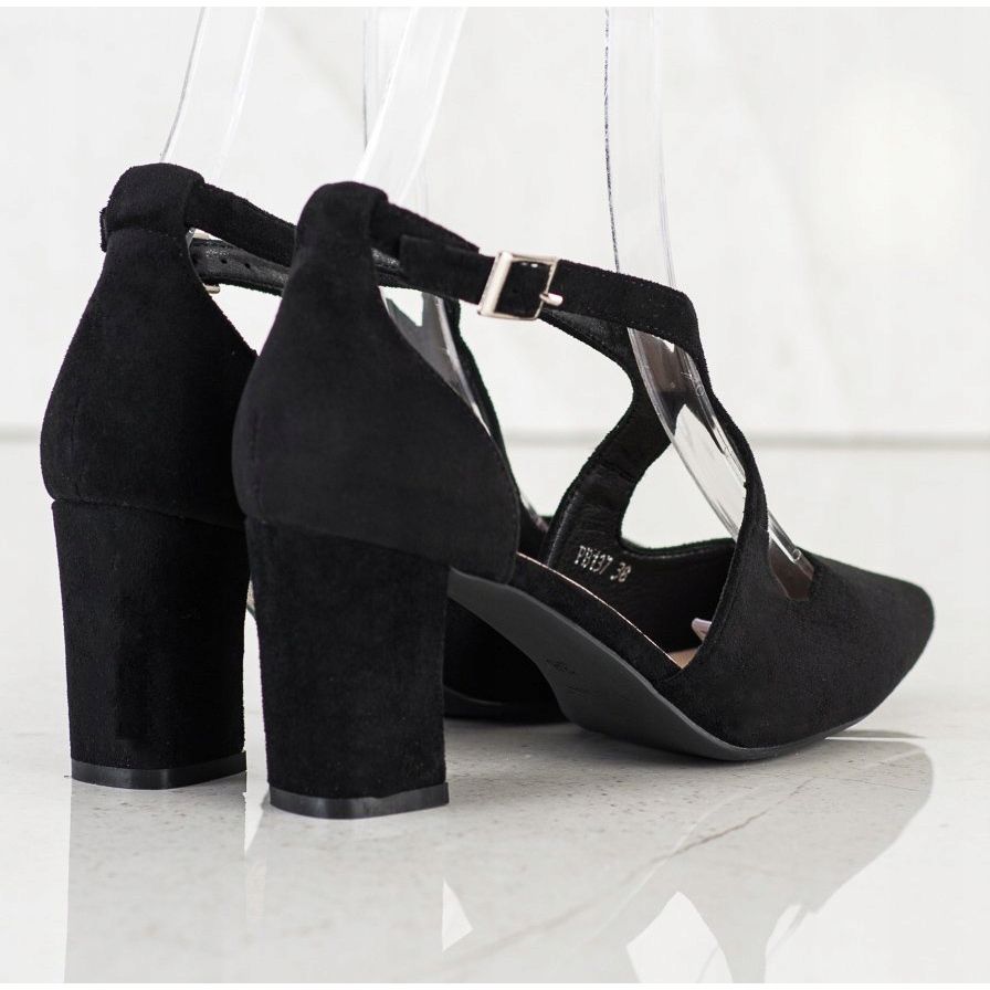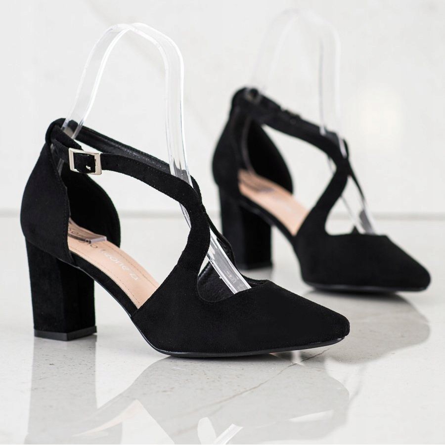 A kiváló minőségű ökológiai velúrbőrből készült pumpák nem csak elegáns megjelenést, de viselési kényelmet is biztosítanak. A kiépített, lekerekített orr és a puha sarok védi a lábát, a szabadon álló középső rész pedig egy csattal átszőtt pánttal finom könnyedséget kölcsönöz neki. A széles, 7 cm magas sarok eleganciát és stabilitást ad, így egész éjszaka kényelmesen mozoghat.