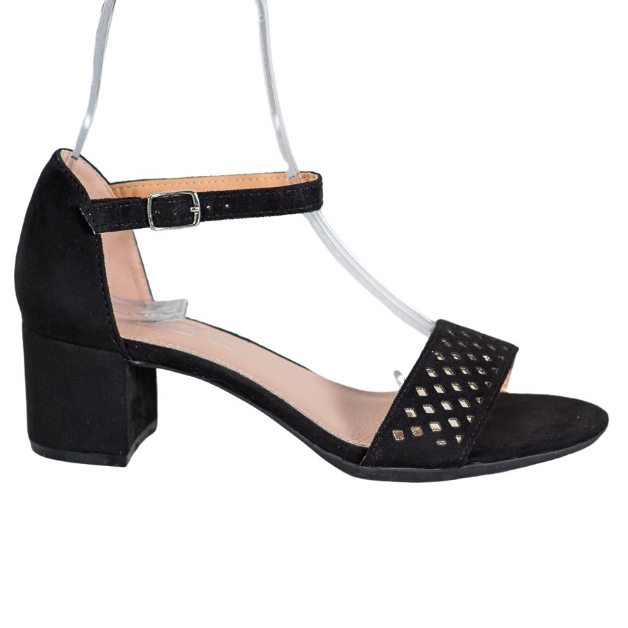 A szandálok felső része ökológiai velúrbőrből készült, ami finom és elegáns megjelenést kölcsönöz nekik. A viselési kényelemről egy 5,5 cm magas blokksarok gondoskodik, amely stabilizálja a lépéseket és tökéletessé teszi a modellt a hosszú távú használatra. A szandálok finom csattal vannak rögzítve, ami tovább hangsúlyozza kifinomult karakterét.