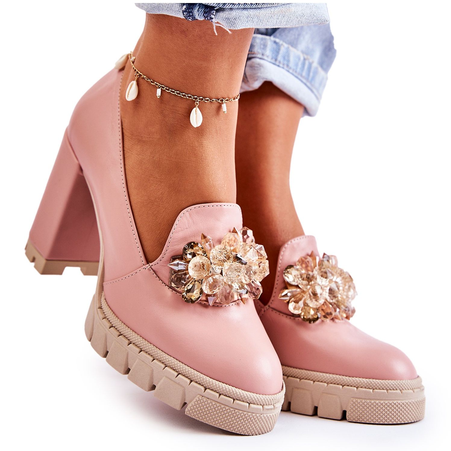 ### Elegáns PA2 pumpák díszítéssel - sima rózsaszín és bézs