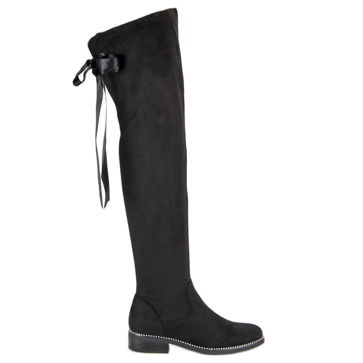 Ennek a csizmának az egyik leglenyűgözőbb részlete a hátulsó szatén szalagfűzés, amely egyedi karaktert kölcsönöz neki. A talp körül kis, fényes golyók finom, szemet gyönyörködtető dekorációt jelentenek. Az őszi-téli szezon divatos trendjeihez igazodva ideális modell mindennapi használatra és esti kirándulásokhoz is.