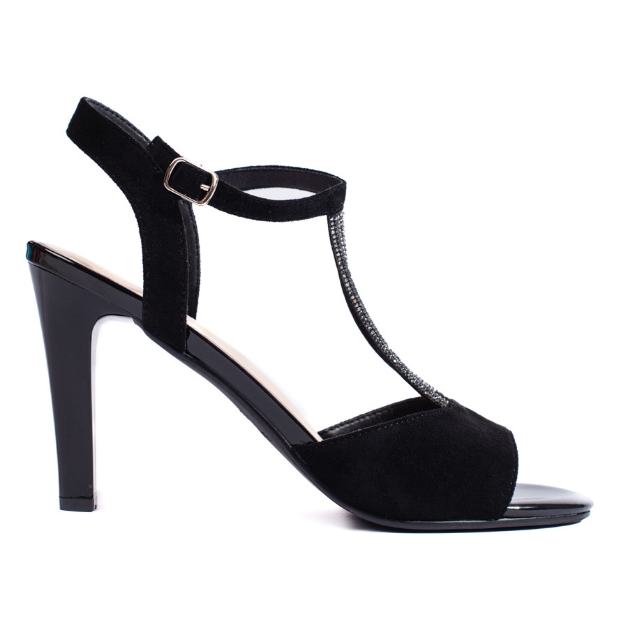 Sergio Leone Elegáns velúr, fekete, magas sarkú szandál a Sergio Leone-tól