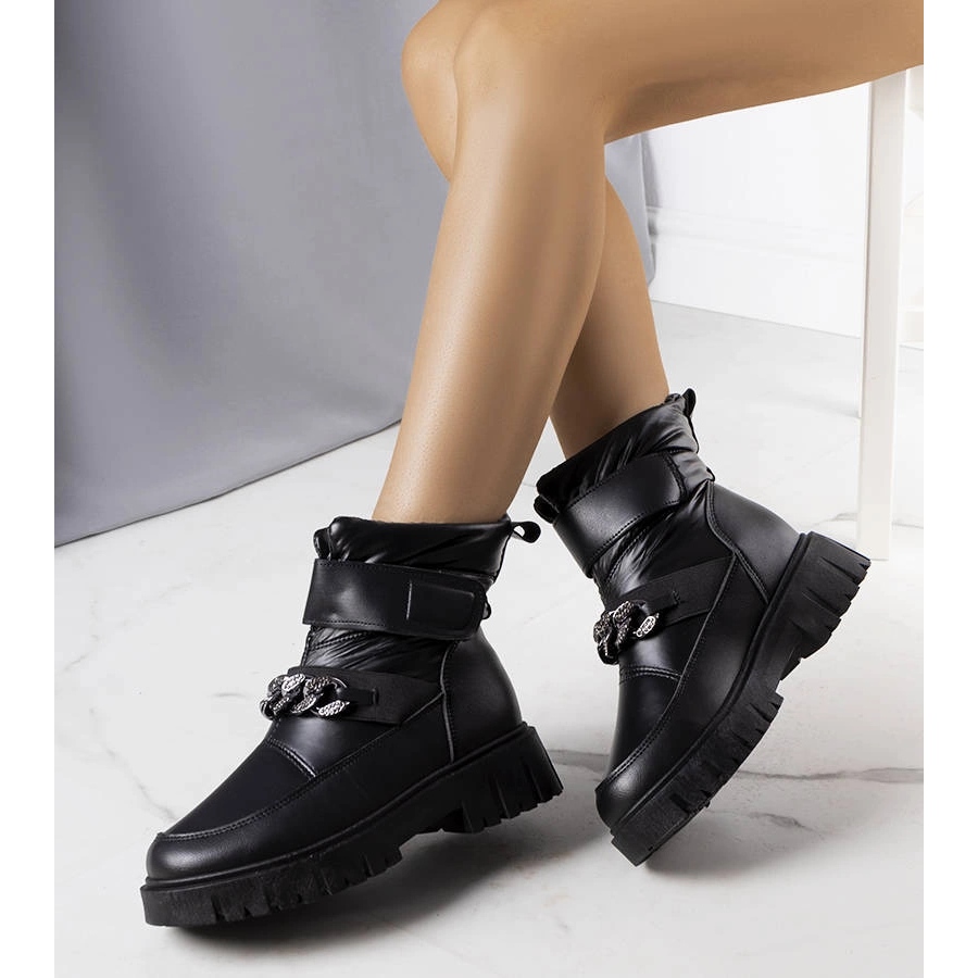 Elegáns és praktikus - Az Ephraim hócsizma tökéletes választás a hűvösebb napokhoz. A kiváló minőségű ökológiai bőrből készült felső, a tartós anyaggal kombinálva biztosítja a kényelmet és a tartósságot, és a dekoratív lánc hozzáadja a stilizálás jellegét. A belső teret meleg szőrrel készítik, amely garantálja a hőszigetelést és a használat kényelmét is alacsony hőmérsékleten.