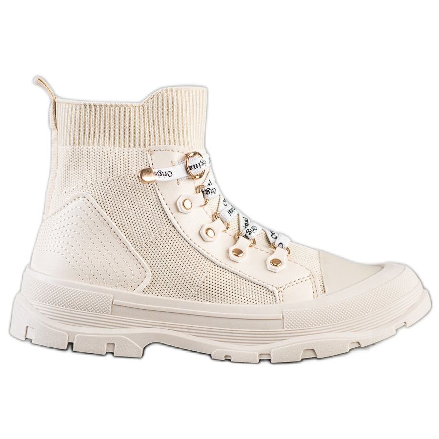 A cipő felsőrésze kiváló minőségű ökológiai bőrből és textil anyagokból készült, ami garantálja a tartósságot és a viselési kényelmet. A puha, beépített saroknak köszönhetően egész nap élvezheti a kényelmet, függetlenül attól, hogy városban vagy sétával tölti. A kerek orr finom, nőies stílust mutat, a bézs szín pedig megkönnyíti a cipők különböző stílusokhoz való illesztését.