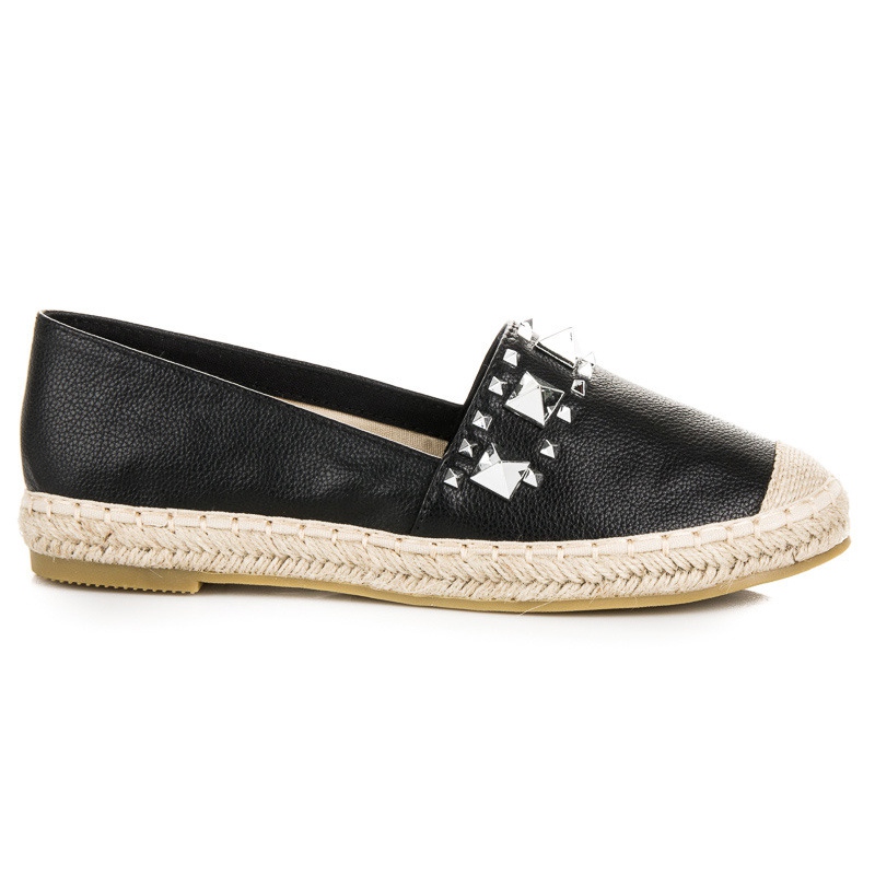 A fekete strasszokkal díszített Seastar espadrillák tökéletes választás a stílust és a kényelmet egyaránt értékelő nők számára. A kiváló minőségű ökológiai bőrből készült cipők a modern dizájnt praktikus megoldásokkal ötvözik.