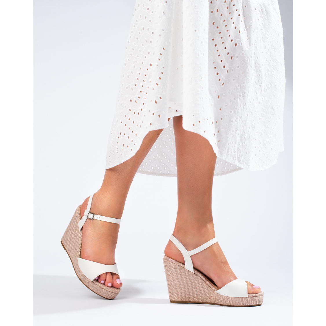 A Shelovet espadrillák magas ékkel, elegáns fehér színben tökéletes választás azoknak a nőknek, akik a kényelmet egyedi stílussal szeretnék ötvözni. A 100%-ban műbőrből készült nyitott sarkú szandálok tökéletesek különféle alkalmakra – az alkalmi kirándulásoktól a bulikon át az ünneplésig.