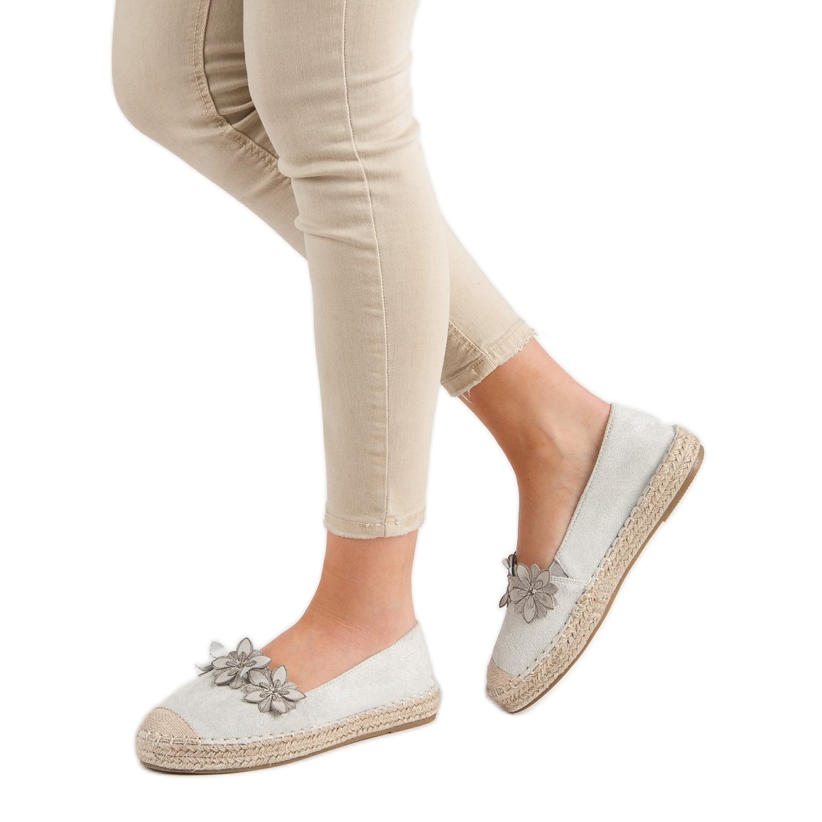 A szürke árnyalatú virágokkal díszített espadrillák a tökéletes választás azoknak a nőknek, akik egyedi bájt és nőiességet szeretnének varázsolni stílusukba. A környezetbarát velúrból készült cipők a divatos dizájnt ötvözik a környezetbarátsággal. A gondosan kidolgozott virágokkal gyönyörűen díszítve minden stílust frissé és könnyűvé varázsolnak.