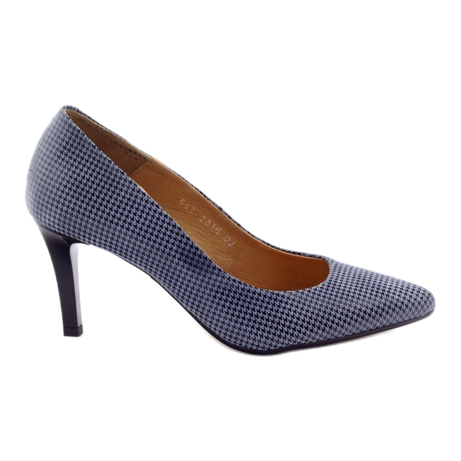 Az Espinto 542 női kockás pumpák az elegancia, a modern dizájn és a kényelem kombinációja, amely minden nő elégedettségét kielégíti. A lengyel Espinto márka érdekes színkombinációban mutatja be az 542/17-es modellt: szürke-kék, fekete és szürke, különféle alkalmakra tökéletes.