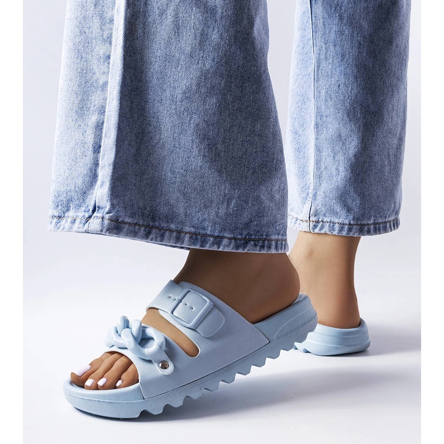 Nyári sláger - Kényelmes és elegáns papucsok, amelyek mindennapi, alkalmi stílusban működnek. Teljesen gumiból készül: a rugalmas hevederek stabilizálják a lábát, dekoratív csatokkal és finom láncmal díszítik, amely hozzáadja a karaktert. A magas, 2,5 cm -es gumi talp párnázást és divatos megjelenést biztosít, és a sima, elosztott felület számos kombinációhoz illeszkedik.