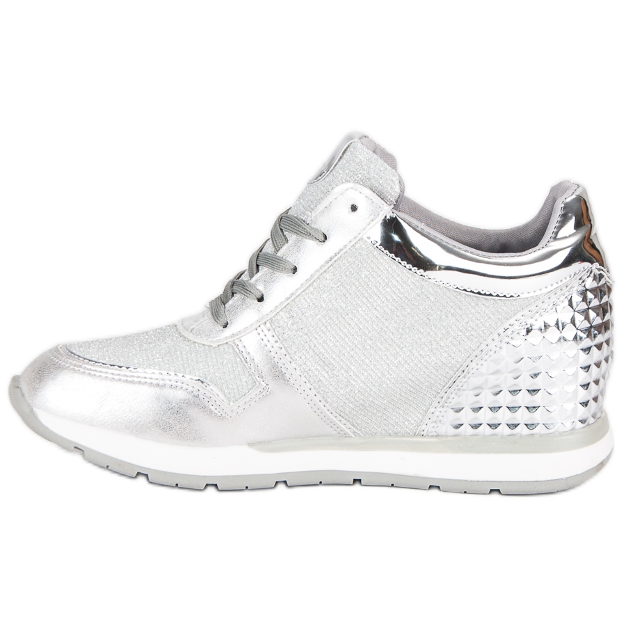 Az ezüstszürke tornacipő egy rendkívül stílusos ajánlat, amely minden divatos nő számára biztosan tetszeni fog. Ökológiai lakkbőrből készültek, és a modern dizájnt ötvözik a viselési kényelemre való odafigyeléssel.