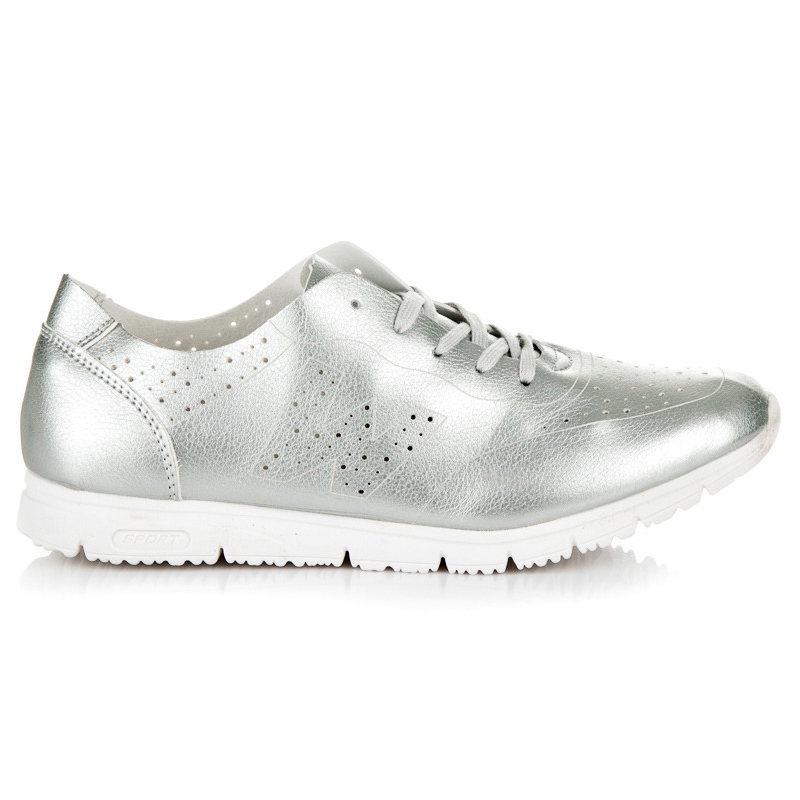 Elegáns és univerzális cipők, amelyek a sportos stílust a mindennapi kényelemmel ötvözik. Az áttört ezüstszürke szín könnyedséget és finom fényt ad nekik, így sok stílushoz könnyedén illesztheted.