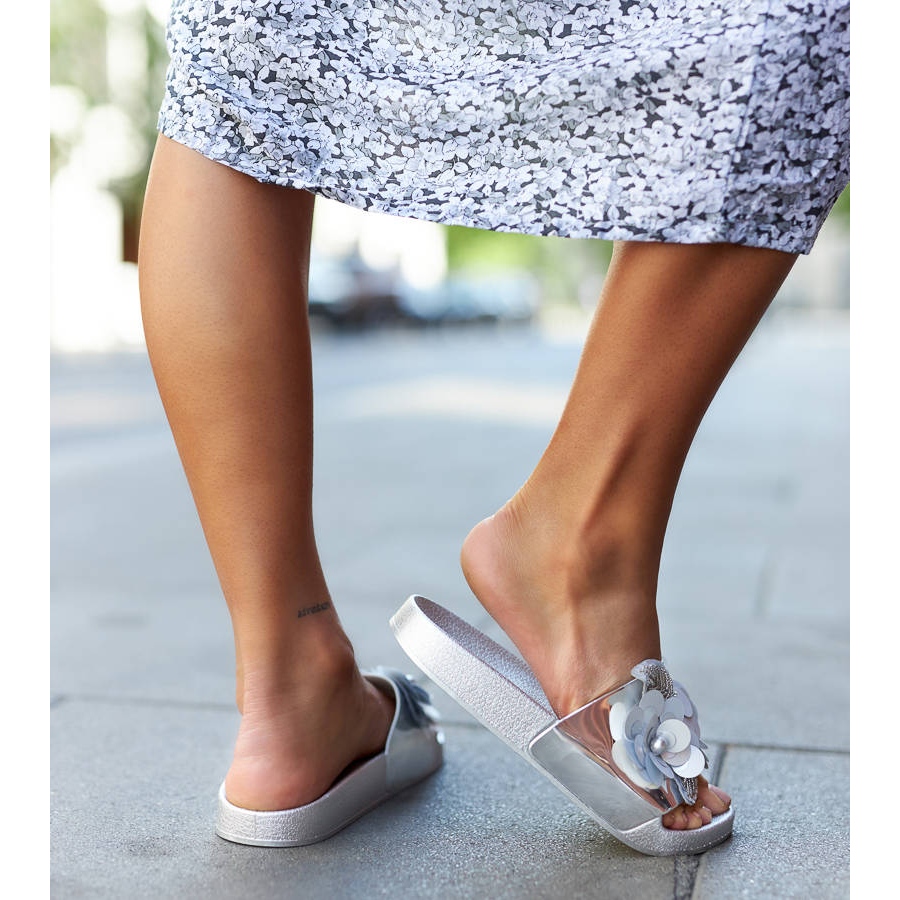 Bemutatjuk az ezüst Caggio papucsokat - a tökéletes választás a mindennapi stílushoz! Ezek az elegáns, dekoratív felsőrésszel rendelkező papucsok nemcsak modern megjelenésükkel, hanem viselési kényelmével is lenyűgözőek. Kiváló minőségű ökológiai bőrből készültek, kényelmes használatot biztosítanak az egész napos használat során.