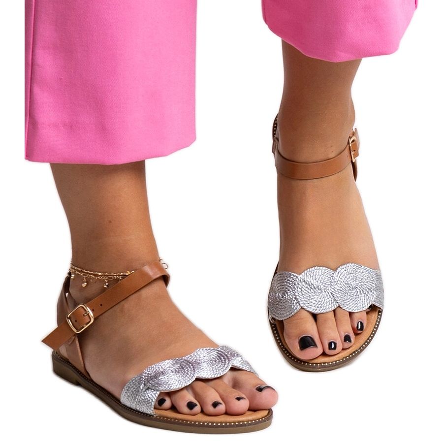 Inna marka Ezüst és barna szandál arany kiegészítőkkel Amja